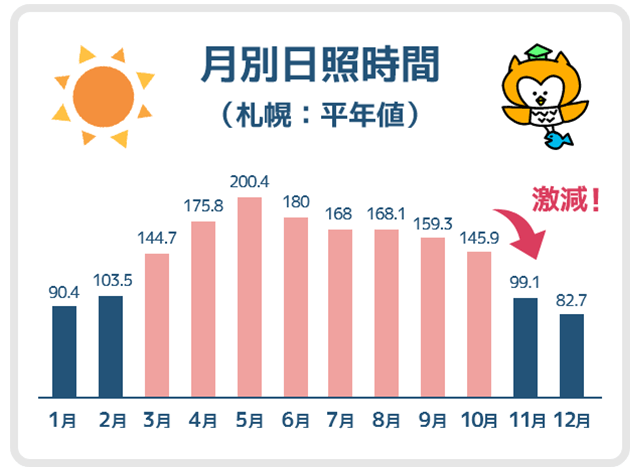 冬うつとは、うつ病のサブタイプの一つで、ある季節に身体のだるさや疲れやすさ、気分の落ち込みなどの症状が出る気分障害のことを言います。一般的に冬の日照時間の少なさと関連しているのではないかとされています。女性や若年者に比較的多く、人口の2.1%に疑われたと報告されています。冬うつの特徴としては、過食、過眠、体重増加です。これは一般のうつの症状である食欲不振や不眠とは異なります。冬は日照時間が短く、脳内分泌物質のセロトニン(幸せホルモン)などが減少し、うつを引き起こしやすい傾向にあります。そんな冬は、積極的に外に出て太陽の光を浴びましょう!自然の光に1時間あたるだけでも効果的です。ウォーキングなどの有酸素運動もセロトニンを増加させるのでおすすめです。また規則正しい生活をすることも大切になり、できるだけ起床時間、就寝時間を決めて、リズムよく過ごしましょう。