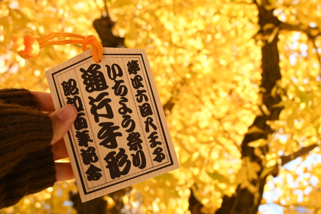 八王子いちょう祭りとは、八王子市追分町から高尾駅入口まで、ほぼ4kmにわたる甲州街道の両側に、約770本のいちょう並木が続き、季節に応じてそれぞれの風景で街を彩り、特に秋になると美しく黄葉し、その時期に合わせて開催するお祭りです。追分町から高尾の方まで続く街道には12か所の関所が用意され、そこには屋台やお囃子があり、私は前もって木でできた通行手形を購入していたので、その通行手形に焼き印を押してもらいました。スタンプラリーみたいで楽しかったです!