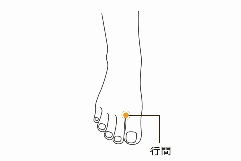 最後に自律神経を整えるツボをご紹介します。足の厥陰肝経(肝に関わる経絡)上にある「行間(こうかん)」です。行間は、足の親指と人差し指の間の水かきの少し上にあるツボで、圧すとズーンとした痛みがでます。イライラやストレス、眼の疲れに効果的です。急に気温があがってのぼせの症状がある日に行間を押すと気が下がるので、のぼせが落ち着きます。ツボ押しは気持ちの良い強さで、5秒ほど押し、5回程繰り返すのがおススメです♪